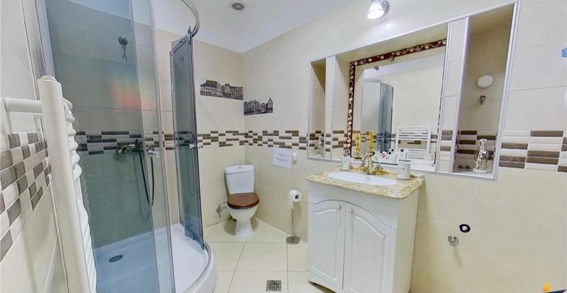 One-Bedroom Apartment. This apartment comes with 1 living room, 1 separate bedroom and 1 bathroom with a shower and free toiletries. The well-fitted kitchen features a stovetop, a refrigerator, kitchenware and a microwave. This apartment has a dining area, a wardrobe, flat-screen TV with satellite channels, as well as winechampagne for guests. The unit has 2 beds.