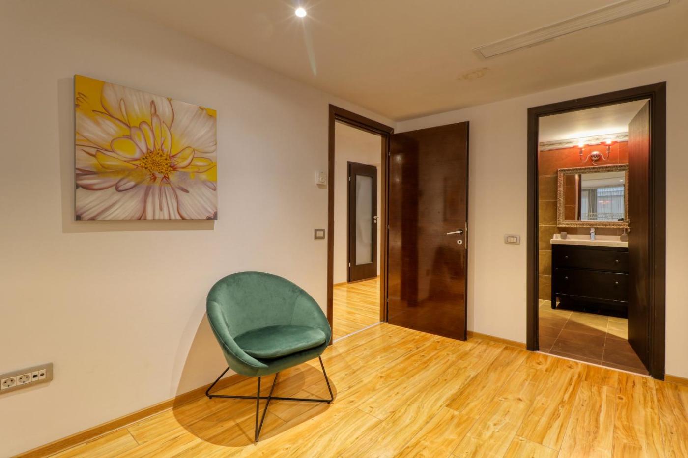 Three-Bedroom Apartment. This apartments standout features are the private pool, hot tub and fireplace. Boasting a private entrance, this air-conditioned apartment includes 1 living room, 3 separate bedrooms and 3 bathrooms with a bath and a shower. Guests will find a refrigerator, a dishwasher, kitchenware and an oven in the well-fitted kitchen. The apartment also features a barbecue. The spacious apartment offers a washing machine, soundproof walls, a tea and coffee maker as well as a terrace with ancourtyard view. The unit has 4 beds and 1 futon.