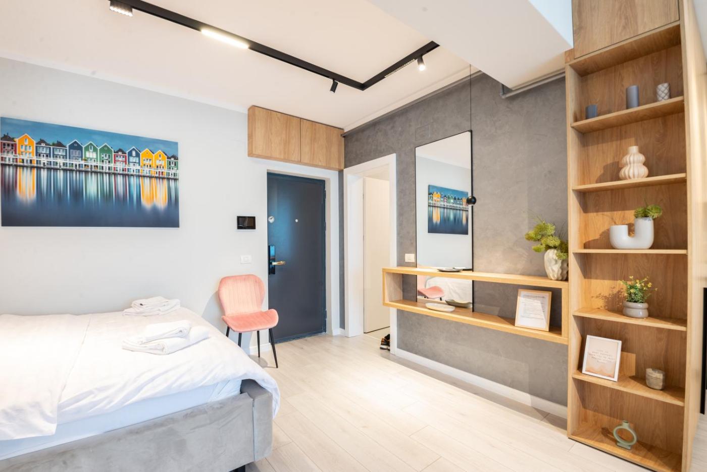 One-Bedroom Apartment. Meals can be prepared in the well-fitted kitchenette, which comes with a stovetop, a refrigerator, a dishwasher and kitchenware. Featuring a balcony, this apartment also provides air conditioning, a washing machine and a flat-screen TV. The unit offers 1 bed.